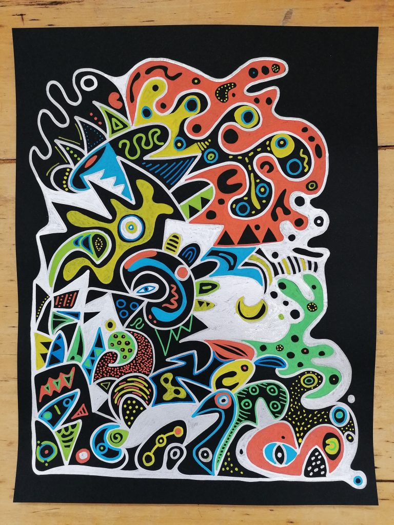 A coté de la musique j’ai toujours eu, comme pour contrebalancer voir nettoyer toutes ces notes, l’amour du dessin et de toute technique picturale…